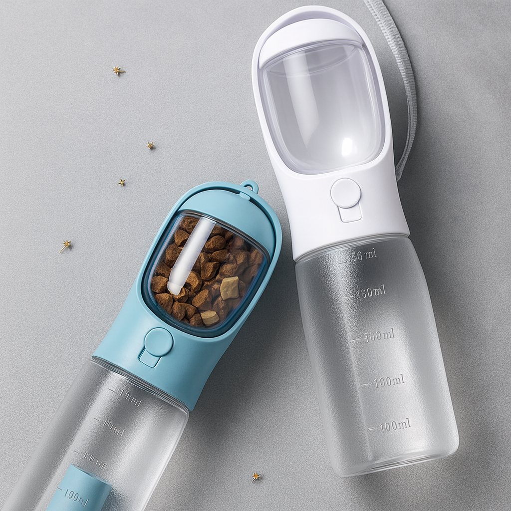 Meet the 3-in-1 Dog Water Bottle – the ultimate travel essential for pet parents on the go. This smart, BPA free, stylish bottle keeps your furry friend happy and hydrated with a built-in water dispenser, food container, and poop bag holder – all in one sleek design.